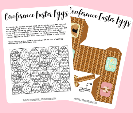 CONFERENCE EASTER EGGS: This one is great when conference is close to Easter. Kids can color the mini eggs and add them to a small Easter basket each time they hear a speaker mention Christ, His Atonement, or His Resurrection.