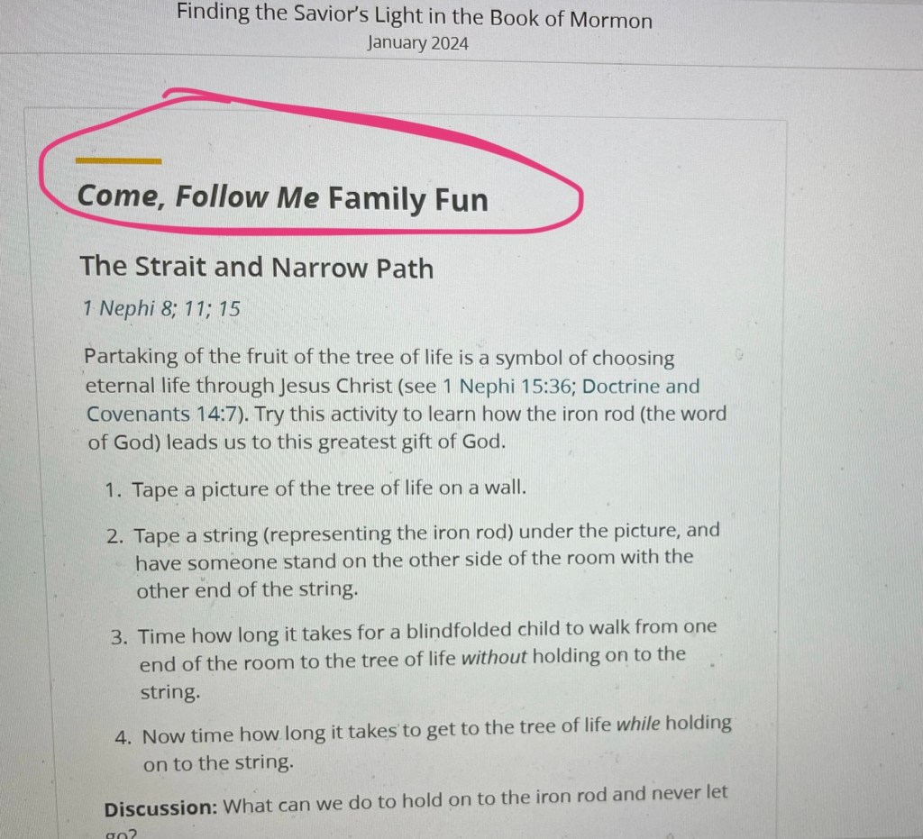 2. The Liahona Magazine also has a small section each month with CFM teaching ideas. To find these ideas each month, scroll down the menu on the left side to the title that says “For Parents” above it. Once you’re in there, scroll down to where it says, “Come, Follow Me Family Fun.” This is where new ideas are posted each month (see pictures below).
