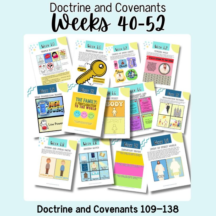 Our newest batch of hands-on activities that can be used to help teach the 2025 Come, Follow Me curriculum is available (D&C Weeks 14-26)! It covers D&C Sections 29-70. Check out our Amazon link or see more info on digital downloads on our website.